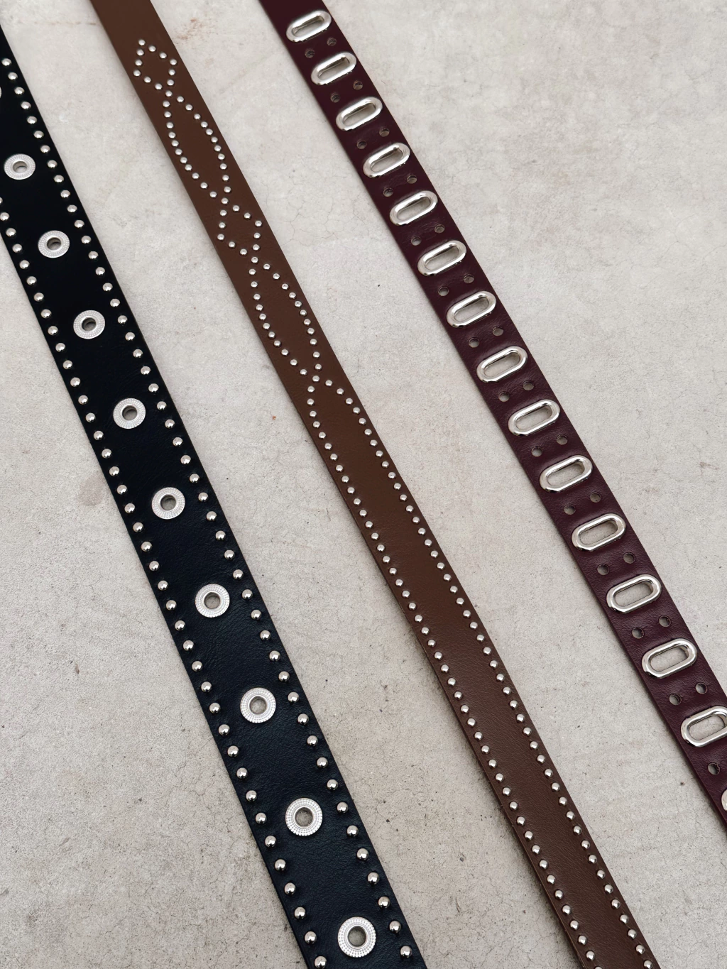 Cinturón marrón con tachas, importado. Tiene 113cm..